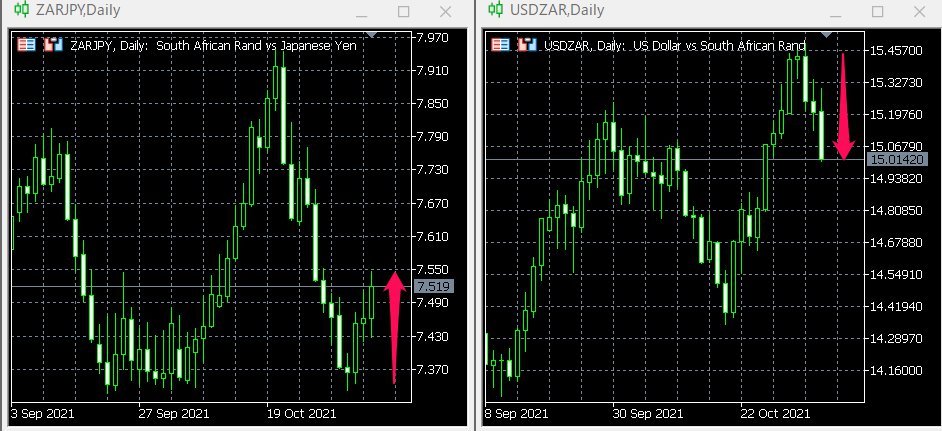 ZARJPY,USDZAR週足チャート